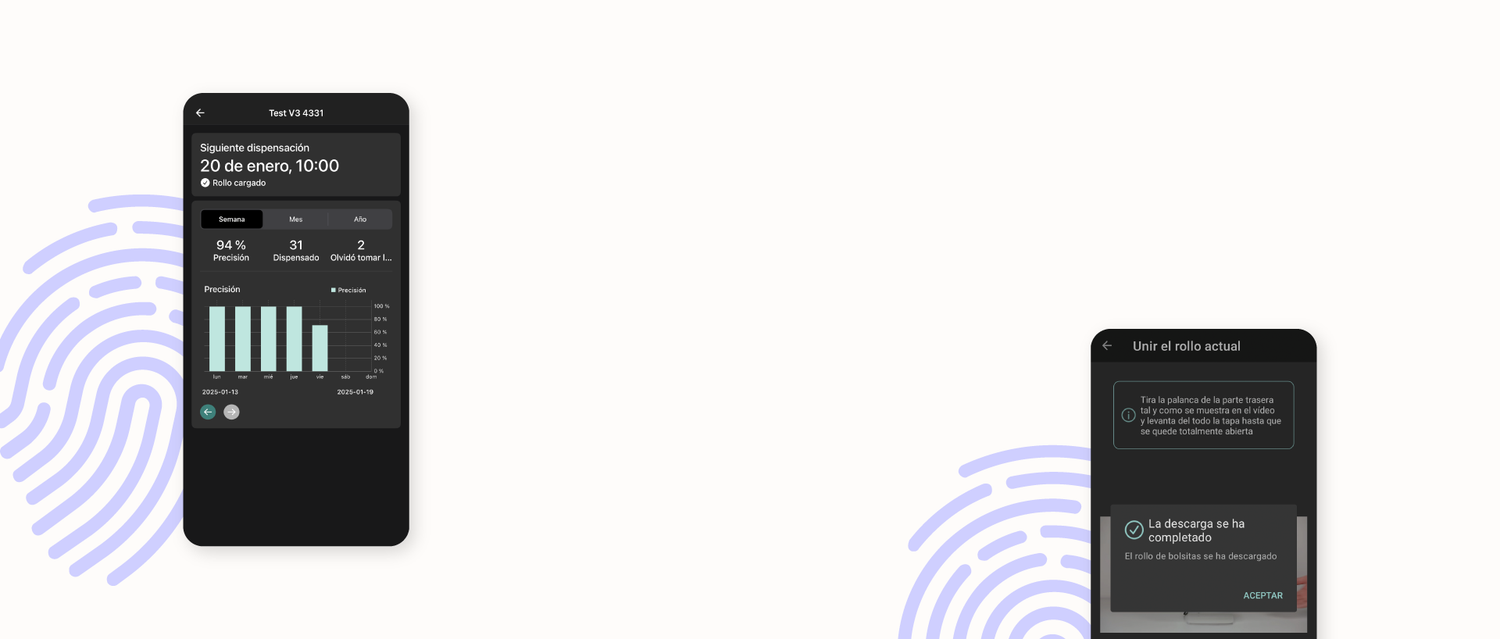 Se trata de una aplicación sencilla, muy fácil de usar y extremadamente intuitiva. Te guía paso a paso en la configuración del dispositivo y permite a los familiares/cuidadores supervisar las tomas de forma remota, brindándoles total tranquilidad sobre el cumplimiento del tratamiento.